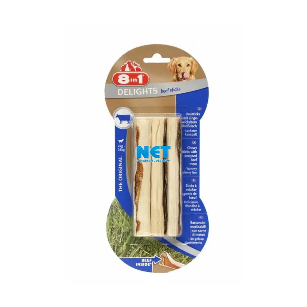 Ürün Adı: 8 in 1 Beef Delight Sticks 75 gr Köpek Ödül Kemiği skt: 12/2027 skt: 12/2027