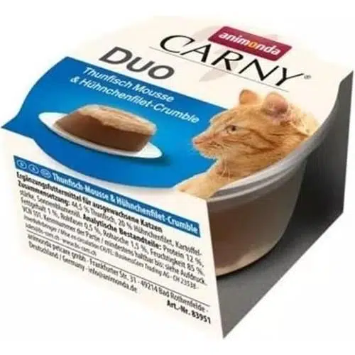 Ürün Adı: Animonda Carny Duo Tavuklu ve Ton Balıklı Yetişkin Kedi Konservesi 70grSkt: 10/2026 Kedi Konservesi 70grSkt: 10/2026