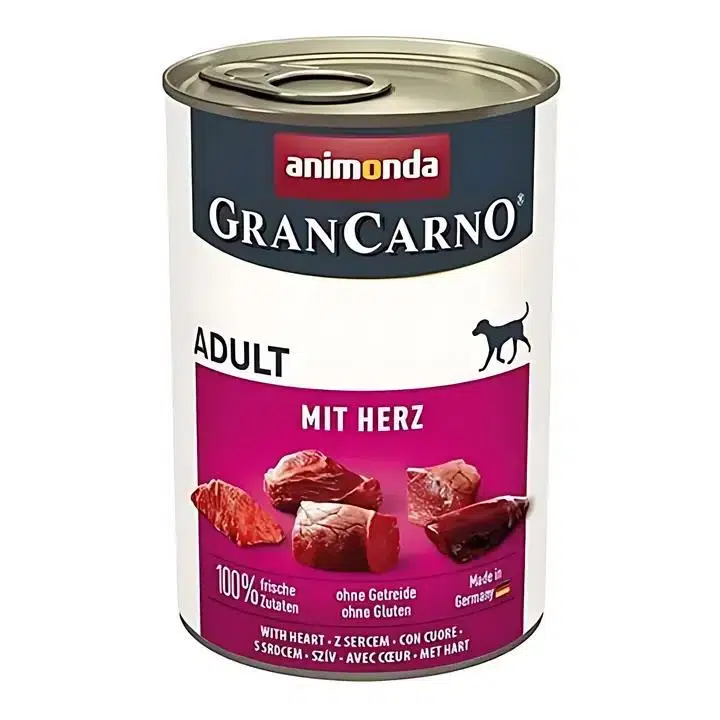 Animonda Gran Carno Yürekli Yetişkin Köpek Konservesi 400gr, yetişkin köpeklerin yüksek enerji ve besin ihtiyaçlarını karşılamak üzere formüle edilmiş, tek lokmalık et parçalarıyla hazırlanmış bir yaş konserve köpek maması çeşididir. %100 et bazlı, yüksek protein içeriği ile kas gelişimini destekler ve güçlü bir lezzet sunar. Tahılsız formülü, hassas sindirim sistemine sahip köpekler için idealdir.