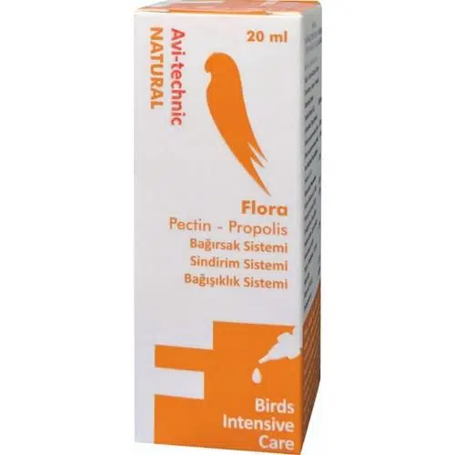 Avi-Technic FLORA Pectin - Propolis Bağırsak Sistemi Güçlendirici / Sindirim Sistemi Güçlendirici / Bağışıklık Sistemi Destekleyici FLORA PECTİN-PROPOLİS kuşunuzun bağırsak sistemini destekleyen Pektin, Propolis, Demir ve Çinko içeren bir kombinasyondur. Kafes kuşları mevsim geçişlerinde hava değişikliklerinde metabolizma dengesizlikleri dolayısıyla ishal olabilirler. Yem değişiklikleri, günlük olarak değiştirilmeyen kirli sular da bağırsak sistemini etkileyebilir. İshalin sebebini tespit ederek sebebi ortadan kaldırmanız çok önemlidir. FLORA PECTİN-PROPOLİS Pectin ve propolis sayesinde bağırsak florasının güçlenmesini ve dengelenmesini sağlayarak ishal oluşumunu önlemeye yardımcı olur. Demir ve Çinko kuşunuzun elektrolit dengesini tekrar kazanmasını sağlar. FLORA PECTİN-PROPOLİS ürününü kuşunuzun her gün tazelenen suyuna ilave edin. Musluk suyu kullanıyorsanız, suyu 24 saat havalandırmayı ve klordan arındırmayı unutmayınız. FLORA PECTİN-PROPOLİS Veteriner Hekim Eşref Dumlu tarafından hazırlanmıştır. Sorularınız için bize mesaj gönderin. KULLANIM ŞEKLİ: Bir kuş için; 100 ml içme suyuna 20 damla (1/2 çay kaşığı) ilave edilir. Güvercinler ve büyük papağan için; suluktaki 100 ml içme suyuna 50 damla (1 çay kaşığı) ilave edilir. Kuşların suları her gün değiştirilir. Tazelenen suya tekrar uygun miktarda FLORA PECTİN-PROPOLİS ilave edilir. Depolama Şekli: Oda sıcaklığında serin, kuru ve ışıksız ortamda depolanmalıdır. Uyarılar: Çocukların ulaşamayacağı yerlerde muhafaza ediniz. Hedef hayvanlar dışında kullanmayınız. Kullanmadan önce çalkalayınız. En Uygun Kullanımı: Üretim tarihinden itibaren 24 ay içerisinde tüketilmelidir. Net Ağırlık: 20 ml e