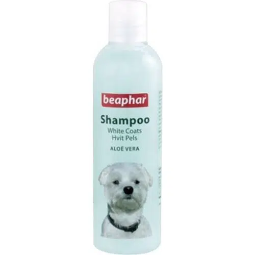 Beyaz tüylü veaçık renkli köpekler için özel olarak formüle edilmiş, etkin temizleme özelliği olan aloe veralı köpek bakım şampuanıdır.