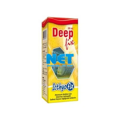 Deep Ichtyofix - Beyaz Benek 30 cc;* Tatlı su ve tuzlu su akvaryumunlarında yaşayan balıkların gövde ve yüzgeçlerinde görülen beyaz benek hastalığının tedavisinde kullanılan antiseptik solüsyondur.* Beyaz benek hastalığı balıkların gövdesinde ve yüzgeçlerinde toplu iğne başından küçük beyaz lekeler şeklinde görülmektedir.* Görülen beyaz lekelerin her birinin içerisinde bir parazit yuvalanmıştır.* Bu parazitler balığın kanını emerek zayıf düşmelerine sebep olmaktadır.* Beyaz benek hastalığı olan balıklar yüzgeçlerini gövdelerine yapıştırmaktadırlar.* Hastalığın ilerleme aşamalarında balıklar halsizleşmekte ve zayıflamaktadırlar.Kullanım Şekli;* Her 10 litre akvaryum suyu için 4 gün boyunca 4 damla damlatınız.* İlaç kullanım süresi boyunca akvaryumda filtrasyonu durudurunuz ve havalandırmaya devam ediniz.* 5. gün akvaryum suyunun 1/4 ünü değiştiriniz.* İlerlemiş olan balık hastalıkları durumunda 6 damla kullanmanız önerilmektedir.* Bu gibi durumlarda ilaç kullanımının, Deep Vitamin ile birlikte uygulanması tavsiye edilmektedir.