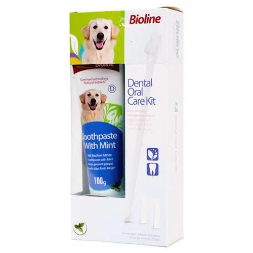 Bioline, köpek diş fırçası ve macunu bulunan diş bakım setidir. Köpeklerde ağız ve diş sağlığı oldukça önemlidir. Dişlerde tartar birikimi ve plak oluşumunu önlemek için köpeğinizin kemirebileceği köpek diş ipleri veya kauçuk köpek oyuncakları kullanabileceğiniz gibi köpek diş macunuyla da ağız ve diş sağlığını desteklemeniz gerekir. Bioline diş macunu köpeğinizin ağzında hoş bir tat bırakmanın yanı sıra dişlerin genel sağlığını desteklemeye de yardımcı olur.