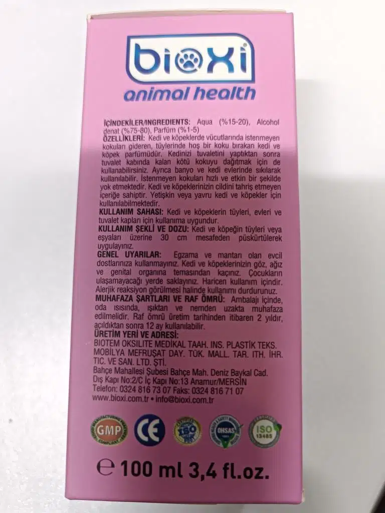 Ürün Adı: Bioxi Cat & Dog Perfume Bulgaran 100 Ml Kedi Köpek Parfüm Kedi Köpek Parfüm