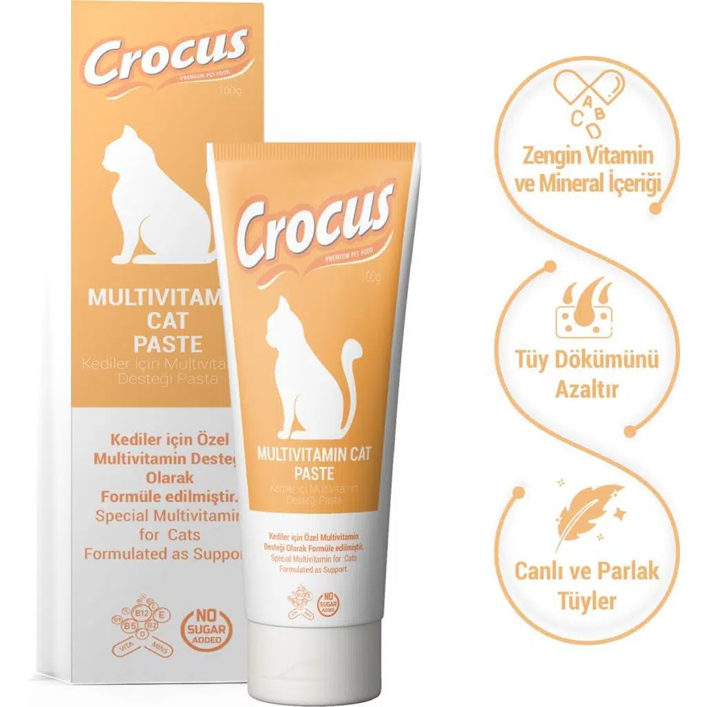 Ürün Adı: Crocus Kedi Multivitamin Macun 100 Gram SKT:08/2026 SKT:08/2026