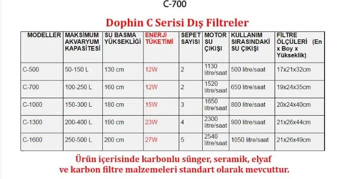 Ürün Adı: Dophin C500 Dış Filtre 500 L/h