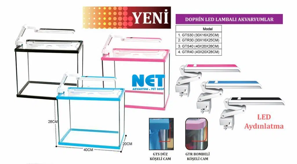 Ürün Adı: Dophin GTS40 Led Lambalı Akvaryum 40x20x28 cm