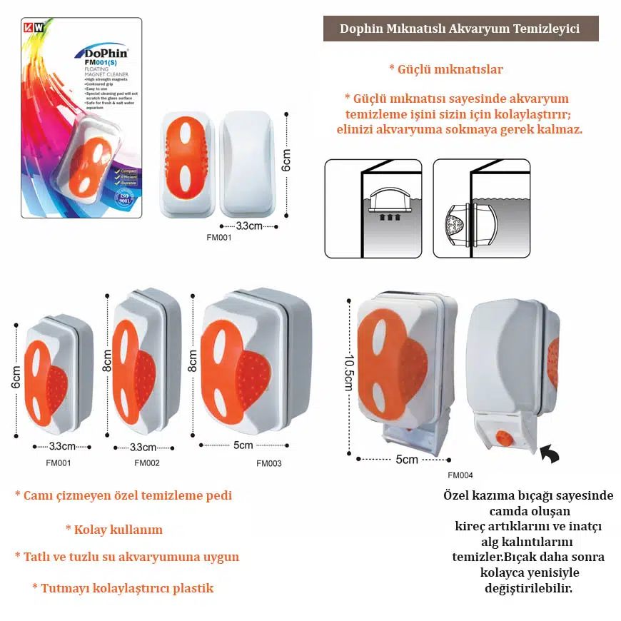 Güçlü mıknatısı sayesinde akvaryum temizleme işini sizin için kolaylaştırır; elinizi akvaryuma sokmaya gerek kalmaz.