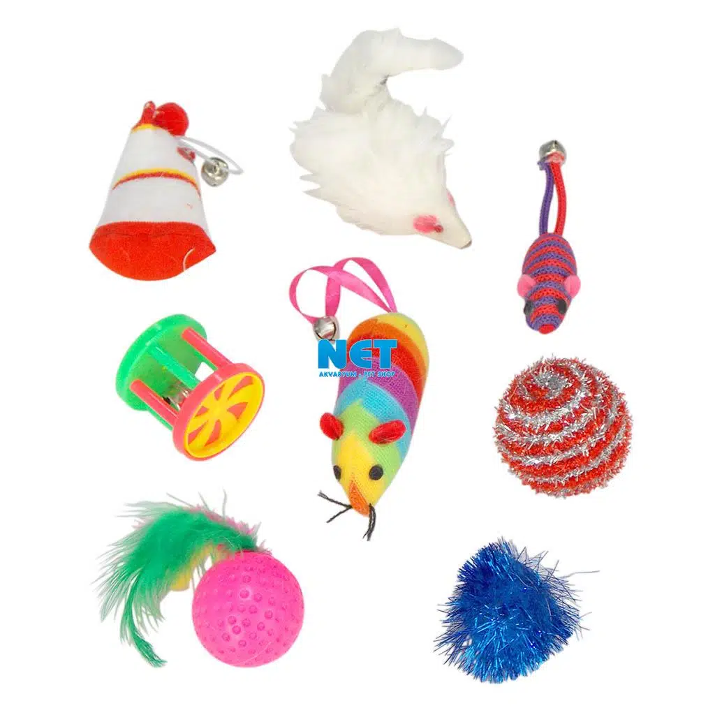 Kedinizin ilgisini çekecek çıngıraklı, tüylü, ses çıkartan fareler ve toplardan oluşan, birbirinden farklı 8 adet oyuncak içeren set