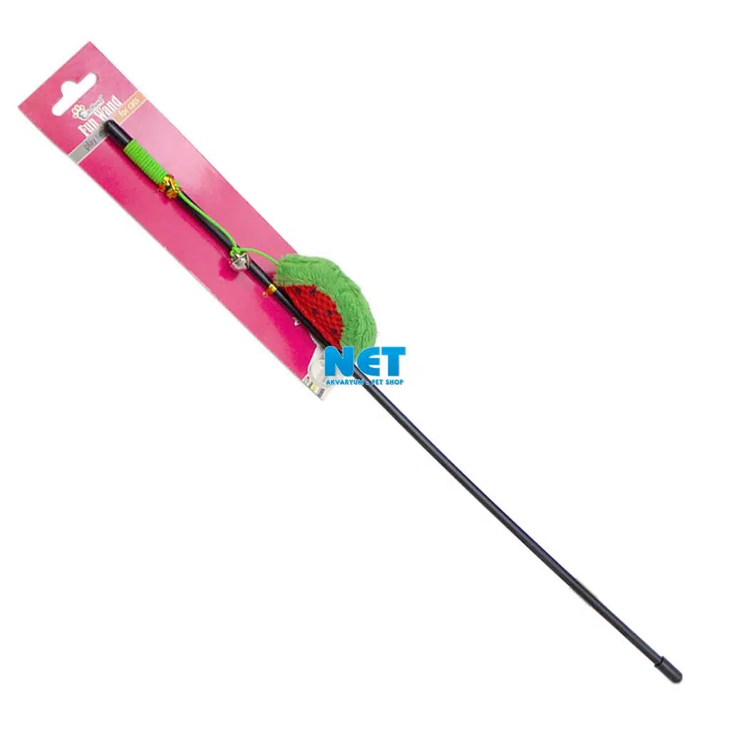 44 cm uzunluğunda, uç kısmında içerisinde kedi otu bulunan peluş bulunan kedi oltası