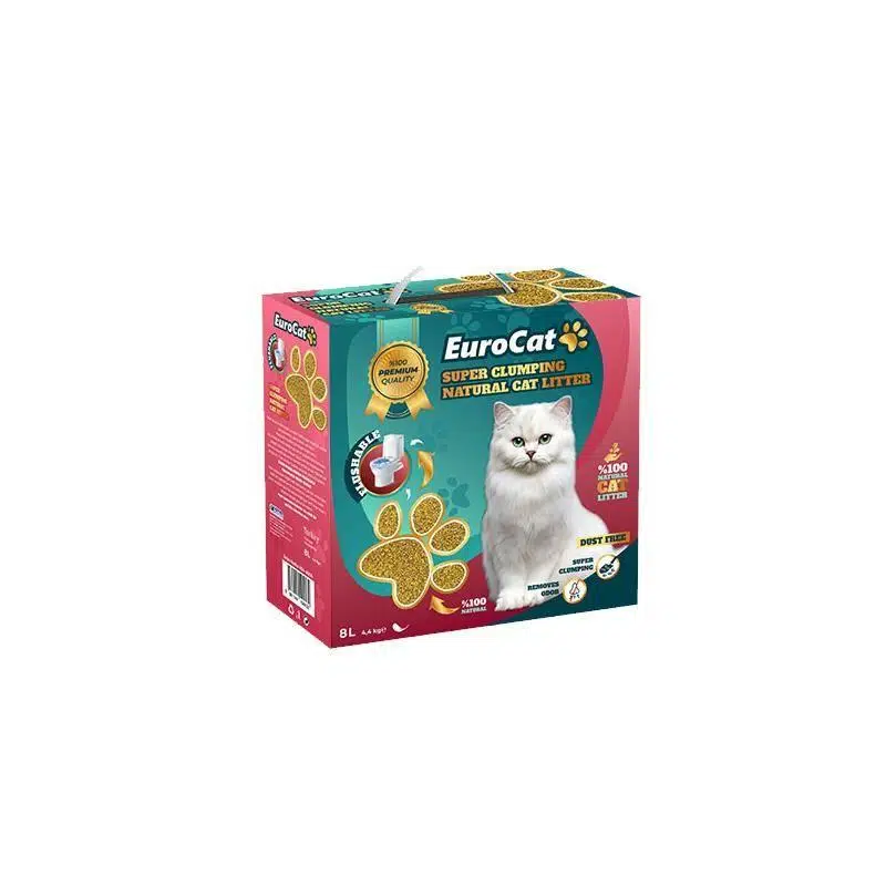 EuroCat Doğal kedi kumu, %100 doğal mısır koçanı liflerinden üretilmiştir. Doğal katkılarla güçlü ve hızlı topaklanma formülü, sıvıları anında emer ve sıkı topaklar oluşturur.