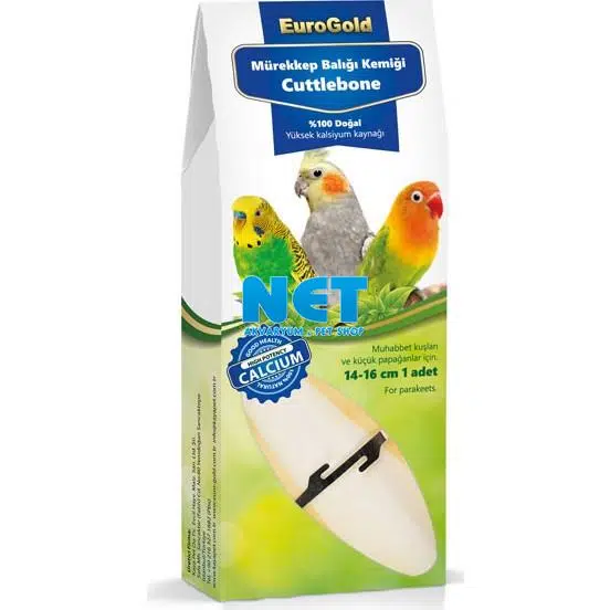 Eurogold Mürekkep Balığı Kemiği Tekli 14-16 Cm Kanarya, muhabbet kuşu ve tüm kafes kuşları için, mineral ihtiyaçlarını karşılayan, gaganın törpülenmesinde yardımcı olan, kafese asılmaya uygun, doğal mürekkep balığı gaga taşıdır. Doğal kalsiyum kaynağıdır, kemik ve kas yapısını güçlendirir. Sağlıklı büyümesine yardımcı olur. Tüylerin daha sağlıklı ve canlı çıkmasını sağlar. İçerdiği doğal mineraller sayesinde hastalıklara karşı direnci artırır. İyi bir iskelet sistemi, güzel bir duruş ve sağlıklı sinir sitemi oluşumunu destekler. Gaganın törpülenmesini bu sayede sağlıklı olmasına yardımcı olur. Yumurtlama dönemlerinde artan kalsiyum ihtiyacını karşılar.