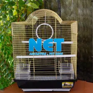 Kanarya ve muhabbet kuşu gibi küçük boy kuş türleri için, pirinç telli, kahverengi plastik alt tabanı bulunan, ızgaralı kuş kafesidir.