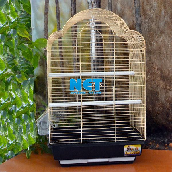 Kanarya ve muhabbet kuşu gibi küçük boy kuş türleri için, pirinç telli, plastik alt tabanı bulunan, ızgaralı kuş kafesidir.