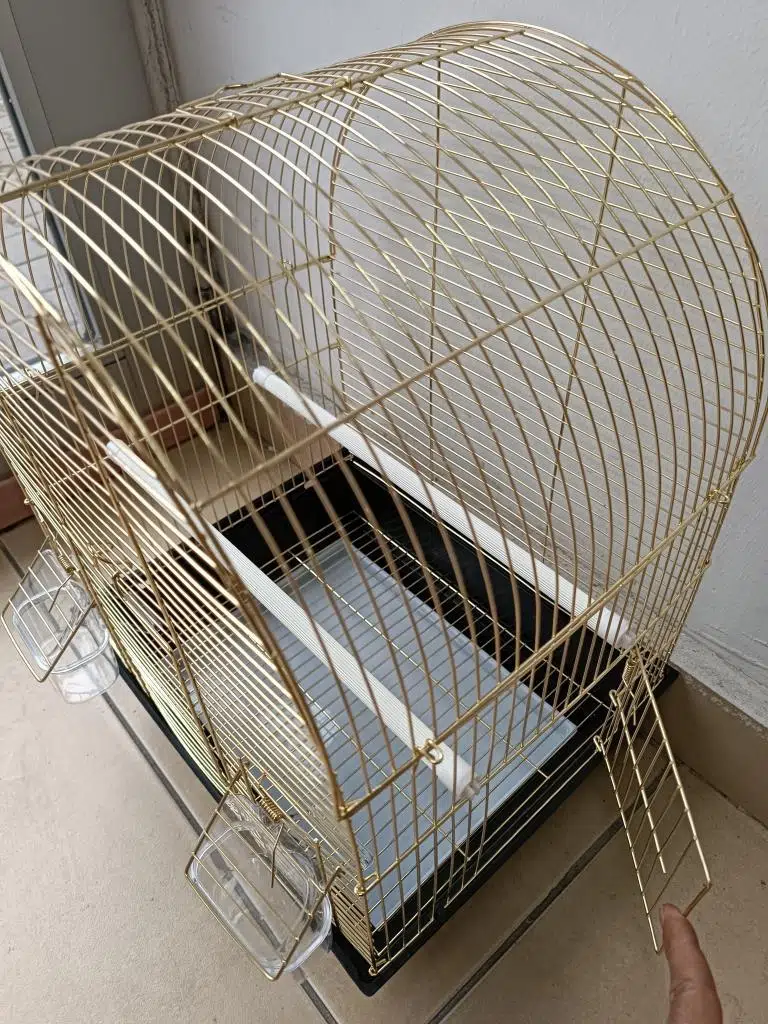 Qhpet Pirinç Telli Oval Çatılı Kuş Kafesi