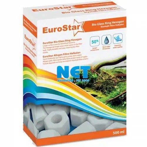 Eurostar Bio Filter Ring Hexagon 500 Ml Faydalı bakteri yataklanması sağlayarak sudaki amonyak ve nitritin biyolojik olarak yok edilmesini sağlar Eurostar Bio Filter Ring Hexagon, altıgen yapısı ile her bir halkasında binlerce gözeneğe sahiptir, bu gözenekler sayesinde faydalı bakterilerin olağan üstü sayılarda üremesine ve yuvalanmasına imkan verir. Bu olağan üstü alan, akvaryum suyunuzun biyolojik olarak arıtılmasını, sınırlı olan dış filtre içinde muazzam miktarda bakteri yataklanması sağlar. Dış filtre yada sump sistemlerinde kullanılabilinir.