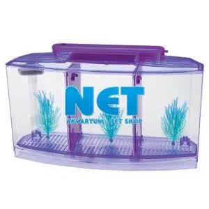 Ürün Adı: Mini Beta Akvaryum Kiti Mor 3 bölmeli 30x9x16 cm Led Aydınlatmalı 2 mod beyaz ve mavi Hava morotu bağlanabilir Led Aydınlatmalı 2 mod beyaz ve mavi Hava morotu bağlanabilir