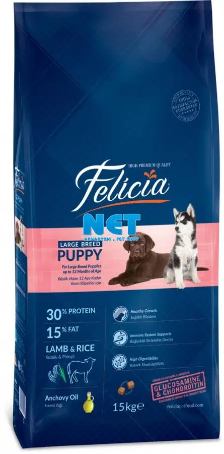Ürün Adı: Felicia 15 kg Kuzulu Büyük Irk Yavru Köpek Maması Skt: 03/2025 Skt: 03/2025