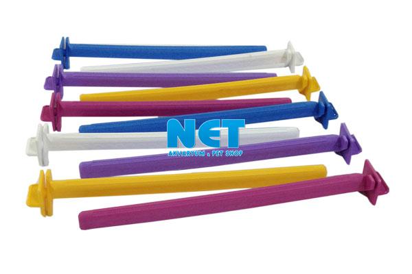 Kuşlar için, dayanıklı plastik malzemeden yapılmış, ucunda bulunan plastik kancası sayesinde rahatlıkla kafes tellerine asılabilen, 20 cm uzunluğunda tünektir.