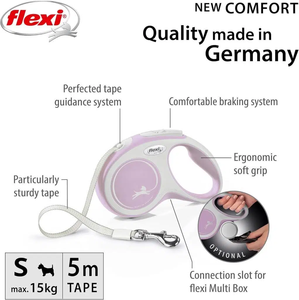 Ürün Adı: Flexi New Comfort Şerit S 5 Metre Rose Max. 15 kg Otomatik Köpek Gezdirme Tasması Otomatik Köpek Gezdirme Tasması