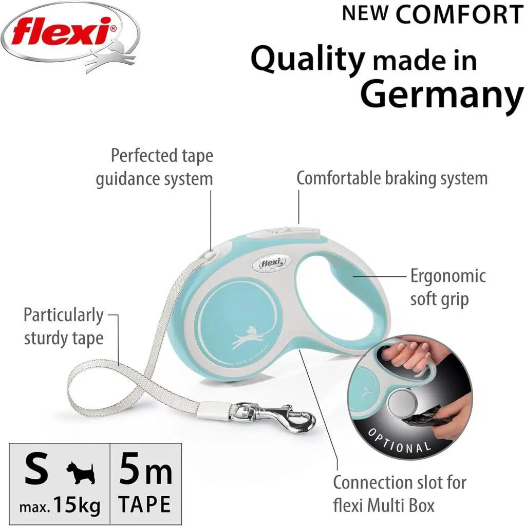 Ürün Adı: Flexi New Comfort 5M Şerit S Açık Mavi max. 15 kg Otomatik Kedi Köpek Gezdirme Tasması Otomatik Kedi Köpek Gezdirme Tasması