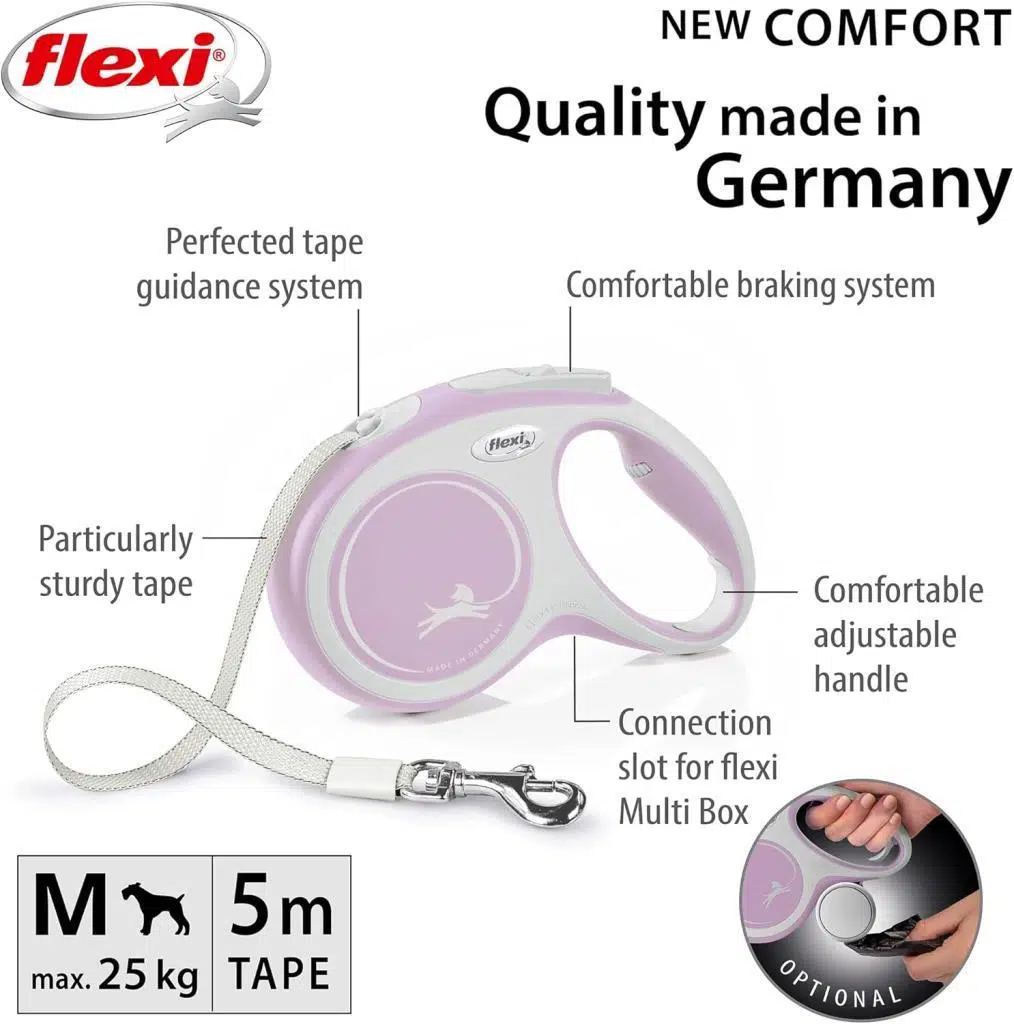 Ürün Adı: Flexi New Comfort Şerit M 5 Metre Rose Max.25kg Otomatik Köpek Gezdirme Tasması Otomatik Köpek Gezdirme Tasması