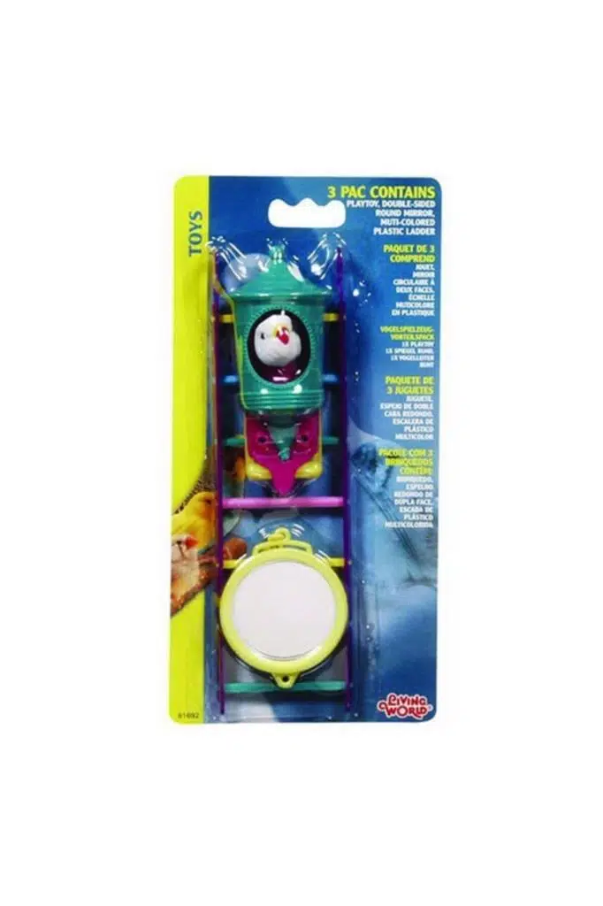 Living world plastik 3’lü kuş oyuncağı seti Living world® classic bird toy değer paketi, ürün çeşitleri # 2, çok renkli merdiven, oyun oyuncak ve çift taraflı cam ayna içerir. Oyuncaklar, kuşları egzersiz yapmak ve oynamak için teşvik etmek, ilgi uyandırmak ve çeşitlilik yaratmak için özel olarak tasarlanmıştır. Sert oyunlara dayanabilen sağlam ve dayanıklı plastikten yapılmıştırlar. Küçük kuşlar için.