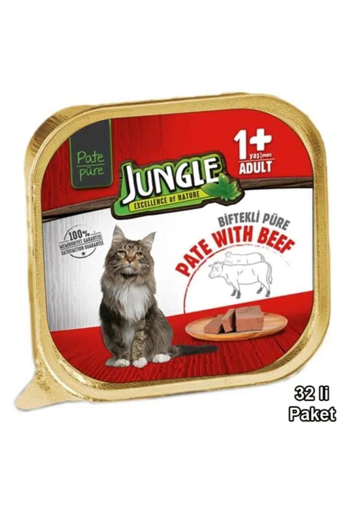 Ürün Adı: Jungle Kedi 32 ad. 100g Dana Etli Ezme/Pate Mama Skt: 07/2025 Skt: 07/2025