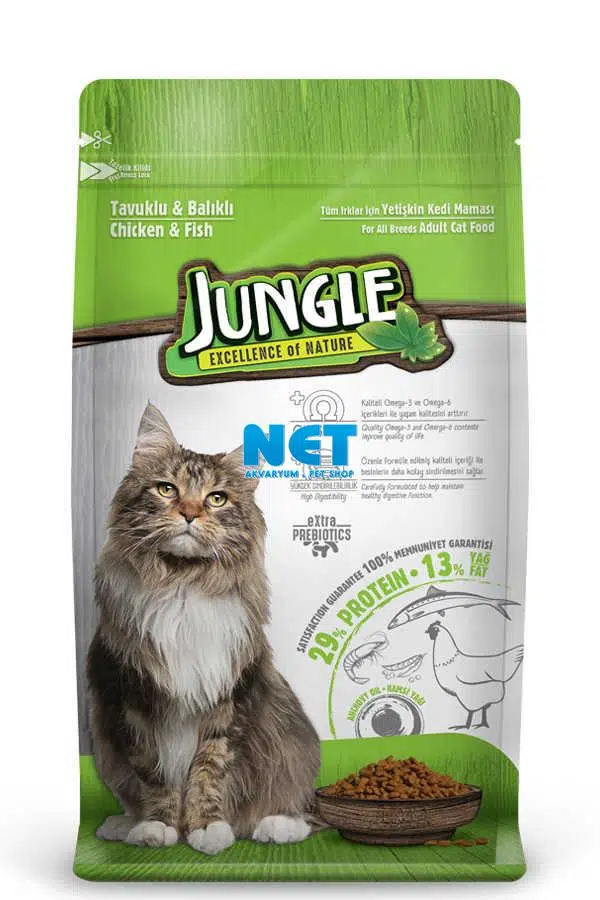 Ürün Adı: Jungle 15 kg Tavuk-Balıklı Yetişkin Kedi Maması Skt : 06/2025 Skt : 06/2025