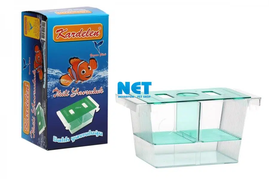 Kardelen İkili Balık Akvaryum Yavruluğu Sert plastik malzemeden üretilmiş canlı doğuran türler için iki bölmeli (ayarlanabilir) vantuzlu yavruluk. Vantuzlar paketin içerisindedir. Ürün Ölçüleri: 16 x 10 x 10 cm ebatlarındaki çıkarılabilir ızgaralı ara bölme bulunmaktadır. Ön kısmına takılabilen vantuzlar yardımı ile akvaryum camına sabitlenerek kullanılabilir.