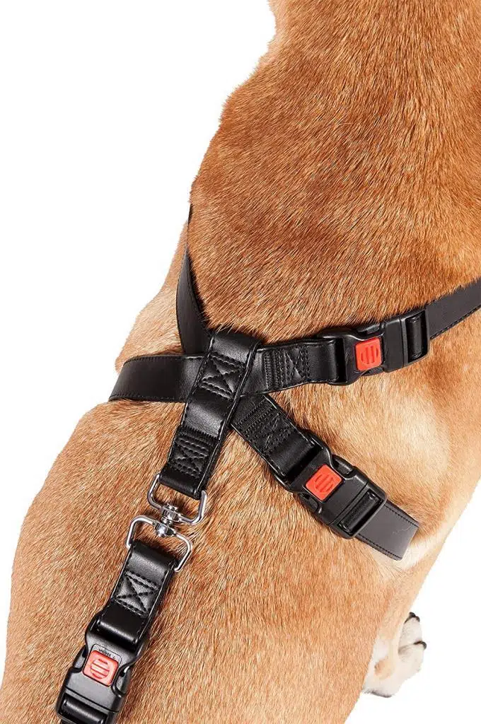 Ayarlanabilir göğüs tasması, uzatması yardımıyla emniyet kemerine bağlanır ve köpeğin aracın içinde serbestçe hareket etmesini engeller.
