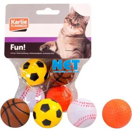 Basketbol, futbol, beyzbol ve golf topu görünümünde 4'lü oyuncak top seti. Sünger toplar daha iyi zıpladığı için kediniz eğlenceli vakit geçirecek. Top çapı: 4 cm.