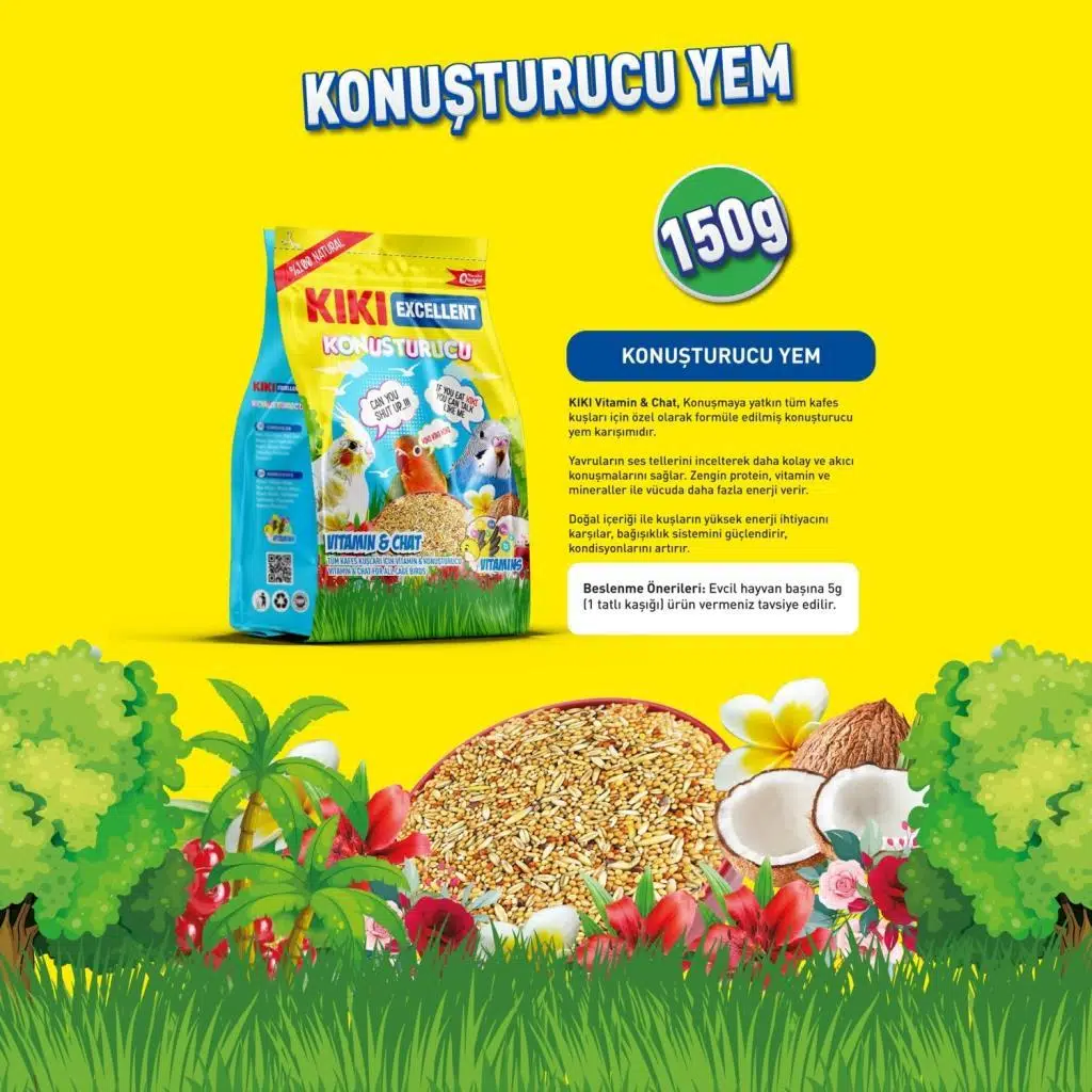 Ürün Adı: KIKI Kuş Konuşturucu 150gr Skt: 11/2025 Skt: 11/2025