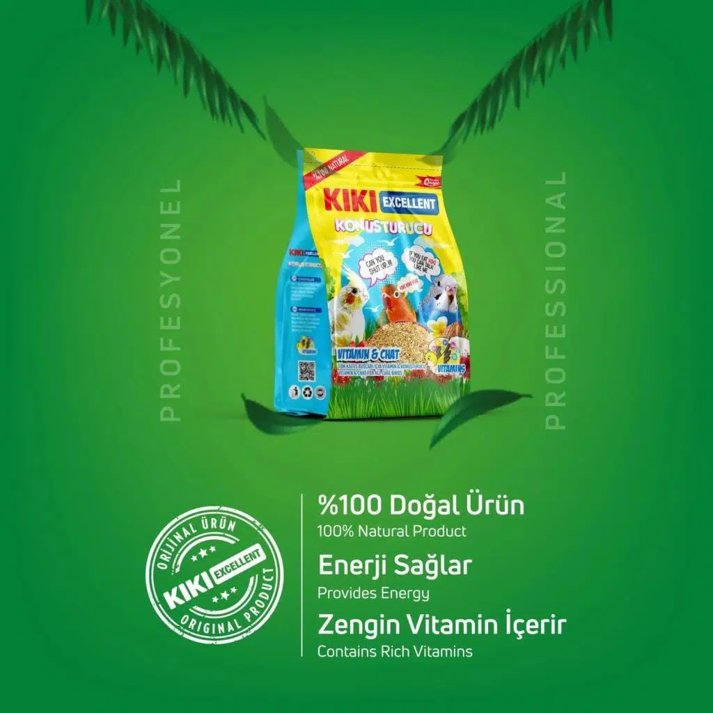 KIKI Vitamin & Chat,Konuşmaya yatkın tüm kafes kuşları için özel olarak formüle edilmiş konuşturucu yem karışımıdır. Yavruların ses tellerini incelterek daha kolay ve akıcı konuşmalarını sağlar. Zengin protein, vitamin ve mineraller ile vücuda daha fazla enerji verir. Doğal içeriği ile kuşların yüksek enerji ihtiyacını karşılar, bağışıklık sistemini güçlendirir, kondisyonlarını artırır. |