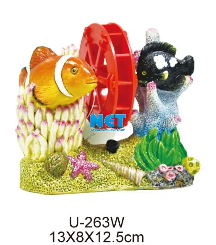 Ürün Adı: Deniz Balıklı Değirmen Akvaryum Dekoru Ebat : 13X8X12h Ebat : 13X8X12h