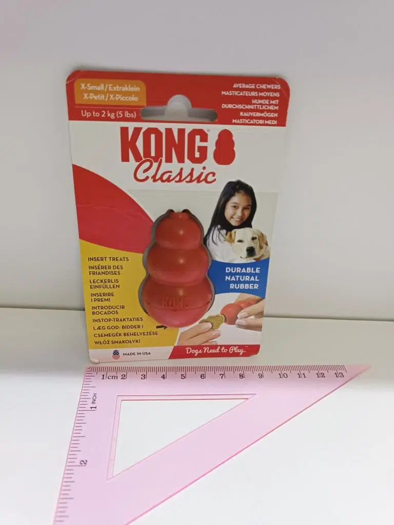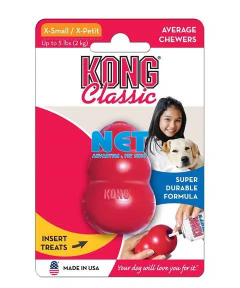 Kong Classic serisi 38 yıldır dünyanın altın standarttaki en iyi köpek oyuncağıdır. Patentli boğumlu özel tasarımı ve tamamen doğal kırmızı kauçuk malzemesi sayesinde istisnasız bütün köpeklerin oyun güdülerine hitap eden eşsiz ve taklidi üretilemeyen bir oyuncaktır. İç bölümündeki boşluğa sağlıklı köpek ödülleri koyarak köpeğinizin saatlerce bu oyuncakla zevkle oynamasını sağlayabilrsiniz. Köpeğinizin ırkına bağlı olarak almanız gereken Kong Classic serisi oyuncak için lütfen linkimize tıklayarak tablodan sizin için en uygun oyuncağı seçiniz. Kong Classic X-Small erişkin ağırlığı 2Kg'a kadar olan tüm ırklar için uygundur.