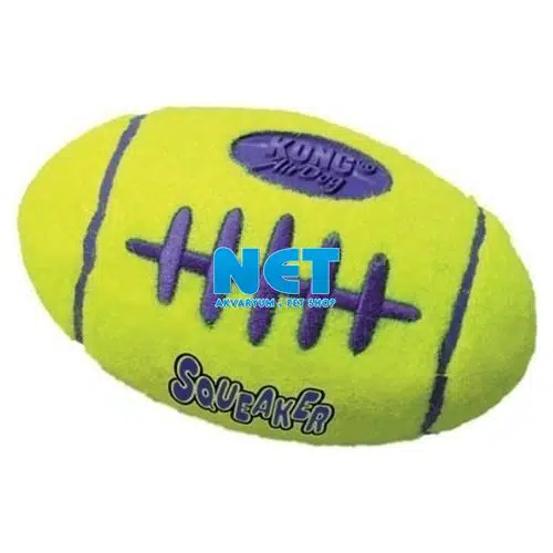 Küçük ve Orta ırk tüm köpeklerin zevkle oynayabileceği bir tut-getir oyuncağıdır. Kong AirDog serisi oyuncaklar iki klasik ama en çok sevilen oyuncağın birleşiminden, tenis topuyla sesli oyuncağın karışımından meydana gelmiştir. Bu sayede kusursuz bir tut-getir oyuncağı ortaya çıkmıştır. Kong patentli özel tasarımı, üstü kauçuk, çevresi tenis topu dokusunda olan bu amerikan futbol topu şeklindeki topla zevkle tut-getir oyunu oynayabilirsiniz. Tenis topu dokusundaki bölümü aşındırıcı malzeme içermez. Bu sayede köpeklerinizin dişleri aşınmaz, zarar görmez. Bu noktada klasik tenis toplarının yüzey kaplamasında camyünü olduğu ve bunun köpeklerin dişlerine ve dişetlerine zararlı olduğu, dişleri aşındırdığı unutulmamalıdır.