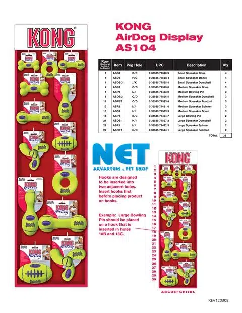 Küçük ırk yavru ve erişkin köpeklerin, ayrıca diğer tüm ırkların yavrularının zevkle oynayabileceği birtut-getir oyuncağıdır.Kong AirDogserisi oyuncaklar iki klasik ama en çok sevilen oyuncağın birleşiminden, tenis topuyla sesli oyuncağın karışımından meydana gelmiştir. Bu sayede kusursuz birtut-getir oyuncağıortaya çıkmıştır. Kong patentli özel tasarımı, üstü kauçuk, çevresi tenis topu dokusunda olan bu amerikan futbol topu şeklindeki topla zevkle tut-getir oyunu oynayabilirsiniz. Tenis topu dokusundaki bölümü aşındırıcı malzeme içermez. Bu sayede köpeklerinizin dişleri aşınmaz, zarar görmez. Bu noktada klasik tenis toplarının yüzey kaplamasında camyünü olduğu ve bunun köpeklerin dişlerine ve dişetlerine zararlı olduğu, dişleri aşındırdığı unutulmamalıdır.