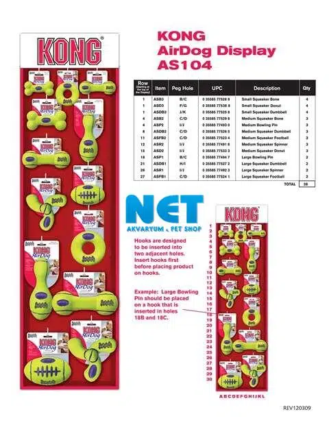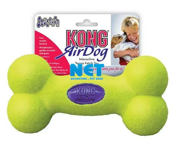 Küçük ve Orta ırk tüm köpeklerin zevkle oynayabileceği birtut-getir oyuncağıdır.Kong AirDogserisi oyuncaklar iki klasik ama en çok sevilen oyuncağın birleşiminden, tenis topuyla sesli oyuncağın karışımından meydana gelmiştir. Bu sayede kusursuz birtut-getir oyuncağıortaya çıkmıştır. Kong patentli özel tasarımı, ortası kauçuk, çevresi tenis topu dokusunda olan bu kemik ile zevkle tut-getir oyunu oynayabilirsiniz. Tenis topu dokusundaki bölümü aşındırıcı malzeme içermez. Bu sayede köpeklerinizin dişleri aşınmaz, zarar görmez. Bu noktada klasik tenis toplarının yüzey kaplamasında camyünü olduğu ve bunun köpeklerin dişlerine ve dişetlerine zararlı olduğu, dişleri aşındırdığı unutulmamalıdır.