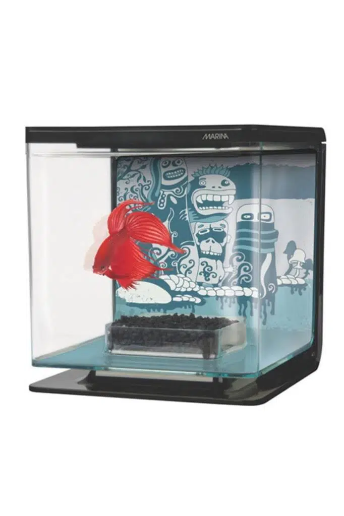 Marina beta akvaryumu 2 litre başlangıç seti wild thing Ilk kez betta sahibi olmak isteyenler için tüm temel donanımları içerir. Şık tasarımı ile ofiste veya evde baş köşeye koyulabilir. Tasarımıyla ve görüntüsü ile sünlük stresin atılmasında ideal bir ortam sağlar. Beta' lar için hazırlanmış 2 lt. Lik özel mini akvaryum Akvaryum çakılı Nutrafin betta plus su hazırlayıcı Nutrafin max betta yemi Desenli arka fon