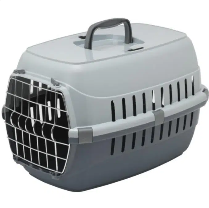 Küçük ırk köpekler ve kediler için metal kapılı ve dayanıklı plastik malzemeden yapılmış, kullanımı kolay, şık taşıma çantasıdır.