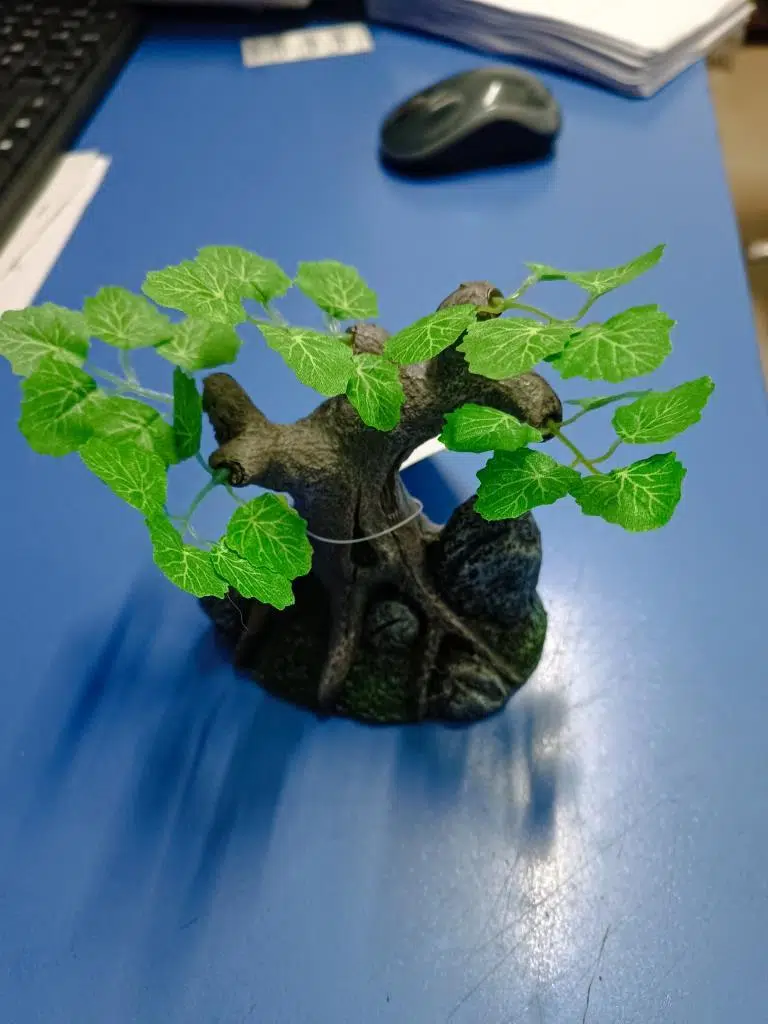 Polyester malzemeden üretilmiş bitkili ağaç akvaryum dekoru.