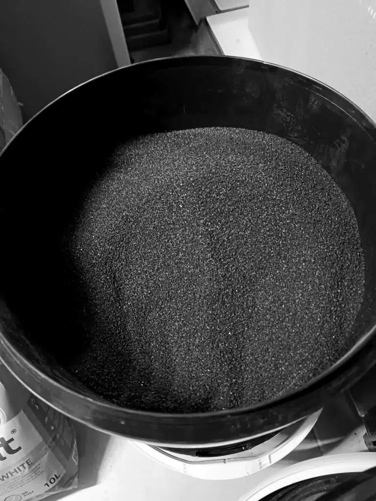 10 kg black sand, 50 x50 cm lik bir yüzeyde yaklaşık 3 cm yüksekliğinde kum alanı oluşturur.