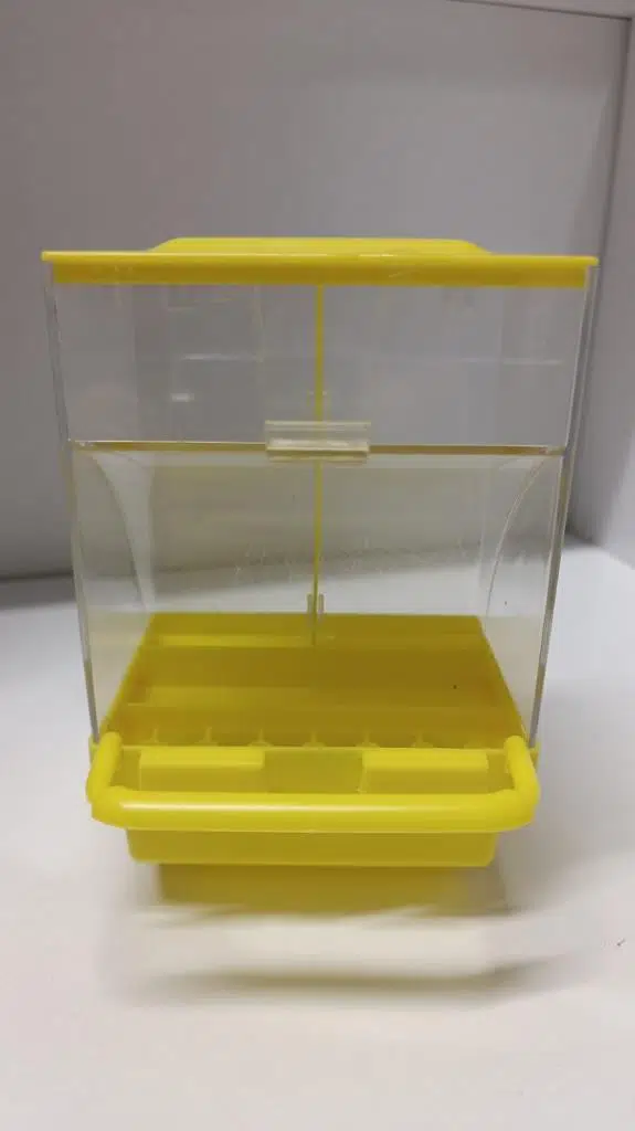 Akıllı yemlik, tasarımı sayesinde yem kabuklarının kafes veya kafes etrafına dökülmesini engeller. Kuşunuz yemi yerken kabukları alt hazneye dolar ve çek çıkar özelliği sayesinde bu kabuklar kolayca temizlenir. Böylece yemlerin üzerindeki kabukları üflemenize gerek kalmadan kuşunuza sürekli olarak taze yem verilir. İki bölmeden oluşması sayesinde bir kısma yem diğer kısma ise mama veya kuş kumu konulabilir. Akıllı yemlik standart yemliklere göre daha fazla yem alma kapasitesine sahiptir.