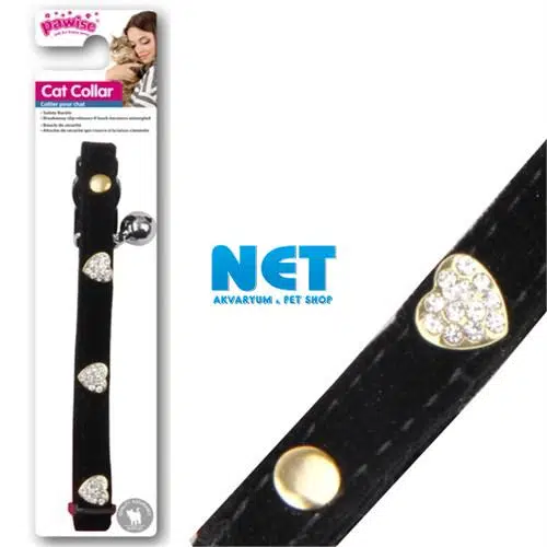 Ürün Adı: Pawise Kalp Taşlı Siyah Kedi Boyun Tasması 30 cm