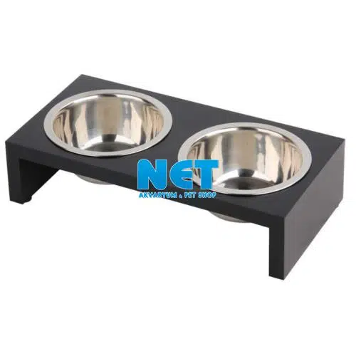 Kediler ve küçük boy köpekler için, istendiğinde çıkarılabilen mama kabı ve ahşap standı bulunan, mama ve su kabı setidir.