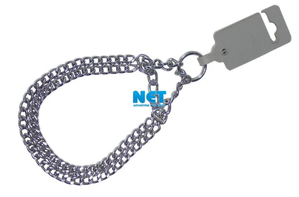 Çift sıra 2,5 mm kalınlıkta zincirden örülmüş, boyun kalınlığı en geniş 40 cm olan boyun eğitim tasma