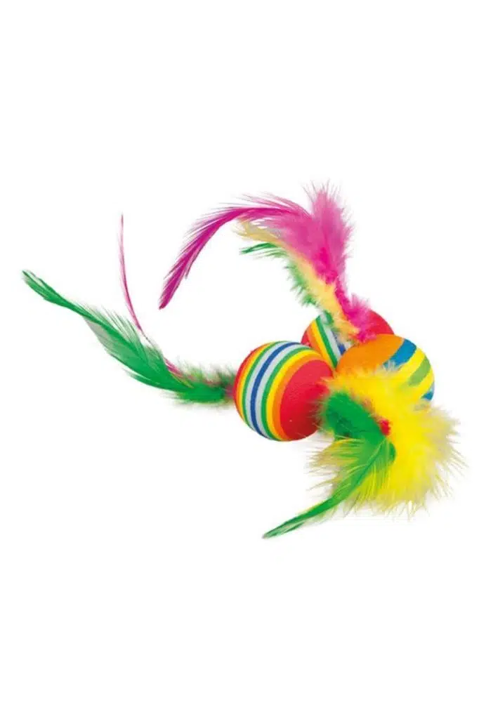 Polo renkli top kedi oyuncağı tüy kuyruklu 3,5 cm 1 adet