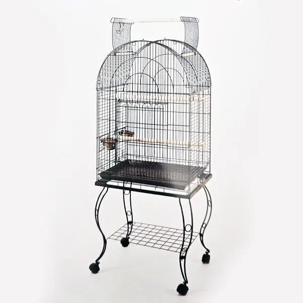 Papağanlar ve paraketler için, pervazlı, telli, tabanı ızgaralı ve tepsisi çıkarılarak kolayca temizlenebilen kafes.