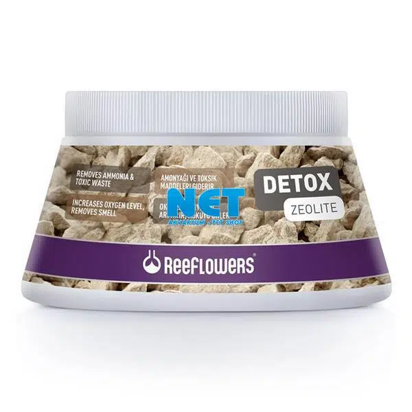 ReeFlowers Detox - Zeolit, volkanik lavların deniz suları ile reaksiyona girmesi sonucu oluşmuş doğal bir taştır. Yem artıkları, dışkı, vb. kalıntıların çürümesi ve suda çözünmesi sonucu oluşan amonyak, hidrojen sülfat ve benzeri toksik maddeleri hapseder, bulundukları sistemden uzaklaştırır. Canlılarda oluşan iç ve dış doku zedelenmelerinin iyileşme sürecini hızlandırır. Su kalitesini arttırır, oksijen seviyesinde artış sağlar.